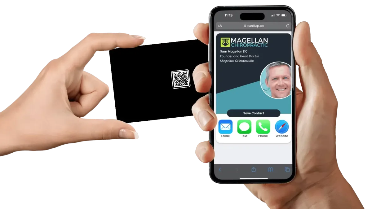 Each card also comes with a special QR code that can be scanned with any phone's camera. This code then leads your potential customer to your digital business card so that they can save your contact info.